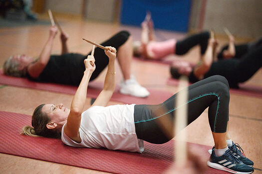 Es wird getrommelt, was die Drumsticks hergeben. Nach treibender Rock- und Elektromusik absolvieren wir ein Ganzkörper-Workout mit echten Trommelstöcken, bei dem Cardio-Elemente mit Ausdauer- und Krafttraining kombiniert sind.